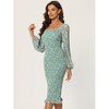 Allegra K Women's Floral Balloon Sleeve Square Neck Ruffle Mermaid Smocked Bodycon Dress - 1 of 4
