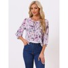 Allegra K Women's Floral Bow Tie Neck Vintage 3/4 Sleeve Blouse - 1 of 4
