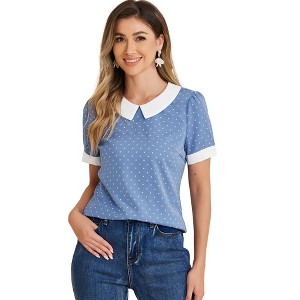 INSPIRE CHIC Women's Peter Pan Collar Keyhole Back Vintage Polka Dots Blouses - 1 of 4