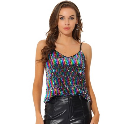 A classic cami that's elevated by modern embellished detailing. Sequins are the main feature of this sleeveless wardrobe. A simple vest is given a striking update with a sequin overlay, with a V-front for a flattering shape which is perfect to pair with the coordinating sequin skirt for a festive ensemble or on its own with trousers and heeled boots. Perfect for adding sparkles to this season, complete the look with leather leggings and a matching jacket. Except for gold, the tops of other colors are bicolor sequins. You can change the color of this cami top by turning the sequins over. This fashionable and trendy clothes for women can not only be worn daily, but can also be easily matched as a Christmas costumes to create a unique style, making you the focus of everyone's attention, ensuring a night of unparalleled happiness and confidence.