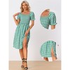 Allegra K Women's Smocked Gingham Square Neck Short Sleeve Casual Plaid Dress - 1 of 4