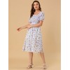 Allegra K Women's Cottagecore Floral Square Neck Puff Sleeves Summer Midi Smocked Dress - 1 of 4