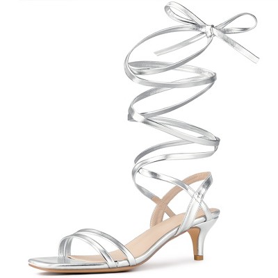 Allegra K Women's Strappy Lace Up Slingback Kitten Heel Sandals - 1 of 4
