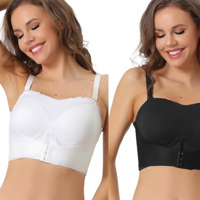 Allegra K Women's Wirefree Breathable Push-up Front Bucking Support Strapless Bras 2 Packs