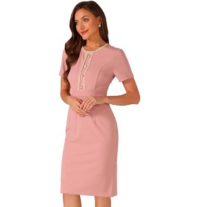 Allegra K Women's Work Business Round Neck Tweed Trim Short Sleeve Sheath Dress - 1 of 4