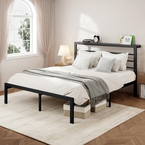 Allewie Modern Bed Frame with 4.7" Headboard Shelf, Heavy-Duty Platform Bed Frame, No Box Spring Needed