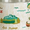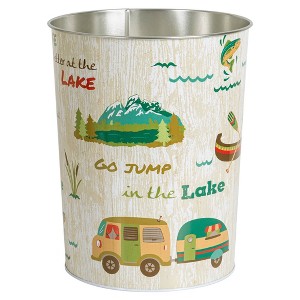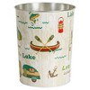 Inspire the feeling of a relaxing vacation at the lake in your bathroom with the Lake Holiday Wastebasket by Allure Home Creation. This outdoorsy, cylindrical can is made of metal printed with an all-over design featuring some of our favorite outdoor activities in natures's colors popped with teal on a subtle printed bark-like background. The interior is finished in a solid chrome color. Both decorative and functional, it will work well in your bathroom or bedroom and will easily fit in most spaces. Bring the great outdoors, indoors with this fun, novelty, piece. Spot or Wipe Clean. Complete the look by coordinating with other pieces in the Lake Holiday Bath Collection or use alone.