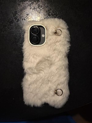 I got this furry white case for my iPhone 16. I get a lot of compliments on it. It’s fuzzy and cute. It has two rings at the back so you can potentially put it on a chain to make it across body phone or around the waist. The things I do not like about it or it’s difficult to gauge where the volume up and Down buttons, and you cannot plug your charger in while the case is on because the fur also the rings that you can attach a chain who are not that strong