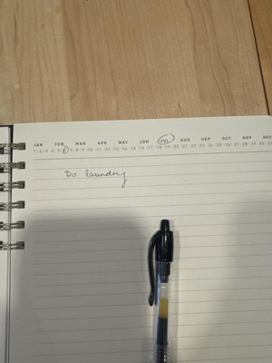 This is a nice notebook to use for taking notes, journaling, doodling, or jotting down a schedule. The paper is thick and the ink of my pens doesn’t bleed through. I also like that this notebook is wire bound, I makes it easier to turn the page and glue binding usually falls apart faster.