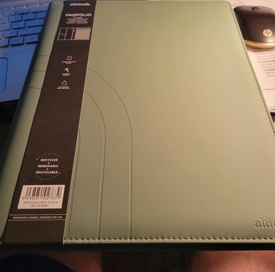 I love this Altitude Padfolio. It has 40 large sheets. It's the perfect product for office use, school and even home. I like that the sheets can be removed and new ones can be inserted when needed. The outside is sturdy and durable. I like the color of the padfolio too. It has an inner pocket. I like this padfolio is sustainably made.