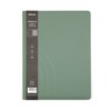 This is a nice padded folder that I would feel comfortable carrying to a job interview. I like the green sage color. It has a side pocket inside the cover and comes with a notepad on the other side. There’s a little elastic loop for a pen. It says vegan leather, and the cover has a matte texture.