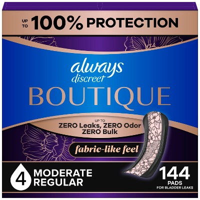 Looking for dependable, strong, bladder leak protection that's barely noticeable under clothes? Experience incredible bladder leak and postpartum incontinence protection in a surprisingly thin and discreet incontinence pad. Always Discreet disposable Incontinence Pads for women provide the comfort you need with up to the 100% leak-free protection you deserve. Thanks to a unique absorbent core that keeps your skin dry by absorbing bladder leaks in seconds, you'll be able to stay comfortable and feel fresh for hours. Walk with poise and confidence knowing two RapidDry layers form a boosted protection zone in the center of the pad that holds up to 5x the average leak, giving you extra bladder control protection where you need it most. The LeakGuards help keep wetness away from the sides and prevent run-offs at the edges where unexpected leaks tend to occur, while the lightly scented OdorLock technology neutralizes odors instantly and continuously. Don't let bladder leaks get in the way of your day. Simply find your right size with the Always Discreet My Fit chart and get the bladder control pads for women with protection you can depend on. Always Discreet Incontinence Pads are available in bulk for added convenience and come in a complete range of absorbencies and lengths.