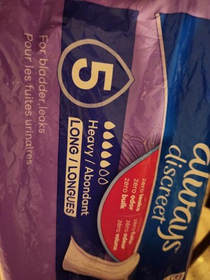 Thank you for sharing your experience with the Always Discreet Incontinence Pads. We’re sorry to hear that you’ve encountered leakage issues and that our product did not meet your expectations for absorbency. Our number one priority is to provide you superior protection with the highest standards of safety and quality you deserve. As such, we take your report very seriously and appreciate that you took the time to get in touch. Since you’re looking for a more reliable option, we recommend ensuring you’re using the right size and absorbency level. If the Heavy Absorbency pads are not working for you, you might consider trying our Ultimate Extra Absorbency pads, which offer enhanced protection for heavier flow days. If you have any further questions or need assistance in finding the right product, please feel free to reach out to us at (855) 206-8286. We're here to help! Thank you for your loyalty, and we hope to provide a better experience in the future.