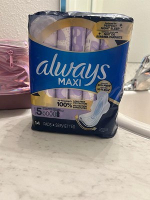 Always Maxi Overnight Pads provide you a PERFECT NIGHT SLEEP with 45% larger back vs Always Regular Maxi Pad for better coverage during the night. If you're looking for uncompromised period protection, you've come to the right place. Always Maxi Pads ABSORB 50% MORE vs. same size Always Ultra Thin Pad. Additionally, Always Maxi Pads also feature the Always 3X Protection System to give you up to 100% leak-free comfort, no matter how you sleep. Always Maxi Pads possess RapidDRY Technology, which works to wick away gushes fast to absorb more than you may need. Experience long lasting protection with leakGUARD technology that locks in leaks, and SecurelyFITS helps the pad stay in place throughout no matter what you do. Make sure that you are getting the right protection from your pad, as using the wrong pad size can lead to leaks. Whether you have a heavy flow or a light one, Always has you covered. Always Maxi Pads come in a range of sizes fit your flow and size perfectly depending on your needs. If you have a light flow or need a teen-sized pad, then we would recommend using our Always Maxi Pad size 1 to 3. If you have a heavy flow or want overnight protection, then we recommend using our size 4 or 5 Always Maxi Pad. We've got your flow covered day and night for up to 100% leak-free protection.
