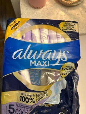 These Always Maxi Overnight Pads are a total game-changer. I’ve tried many brands over the years, but these are by far the most dependable. They’re incredibly absorbent and give me full coverage and peace of mind throughout the night—no leaks, no discomfort, no worries. The extra length and wider back provide that extra layer of protection that actually works, especially on heavier nights. They stay in place well and don’t bunch up or shift around, which is a big plus. Soft, comfortable, and super absorbent..!! Highly recommended….!!!