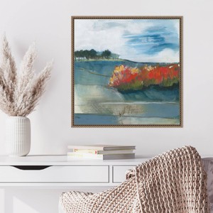 - FRAME DETAILS: The canvas is framed in the Sylvie Gold frame, which is a modern, float frame with gold coloring, burnished detailing and dramatic depth. The frame measures 1 in. wide and stands 2 in. off the wall. The canvas appears as if it is floating in the frame because it has a narrow gap between the edge of the canvas and the frame.