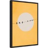 This artwork features several birds perched on a wire against a large circular backdrop resembling a sun. The scene is rendered in a minimalist style with the birds as simple black silhouettes. The warm orange and grey tones create a calming and abstract visual experience. This canvas art print was created by Eins Kubistika and printed in Waunakee, WI. It is stretched across a solid surface to resist sagging. We use only premium, high-tension canvas. Our exclusive stretching techniques hide corner folds and provide a taut canvas surface. The artwork is authentically licensed. The canvas appears as if it is floating in the frame because it has a narrow gap between the edge of the canvas and the frame. Our canvas items are individually made using traditional custom framing techniques, it has the quality you would expect from your local frame shop.