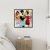 This artwork depicts three fashionable women against a vibrant, abstract background. Each figure is distinctively styled in a colorful, retro 1960s-inspired outfit, exuding a sense of modern chicness. The use of bold colors and dynamic lines adds energy to the composition. This canvas art print was created by Elan Studios and printed in Waunakee, WI. It is stretched across a solid surface to resist sagging. We use only premium, high-tension canvas. Our exclusive stretching techniques hide corner folds and provide a taut canvas surface. The artwork is authentically licensed. The canvas appears as if it is floating in the frame because it has a narrow gap between the edge of the canvas and the frame. Our canvas items are individually made using traditional custom framing techniques, it has the quality you would expect from your local frame shop.