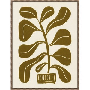 The artwork features a stylized plant with broad leaves, rendered in a simplified and abstract form. Set against a neutral background, the design emphasizes organic curves and earthy tones. The minimalistic approach gives it a timeless, vintage appeal. This canvas art print was created by Alisa Galitsyna and printed in Waunakee, WI. It is stretched across a solid surface to resist sagging. We use only premium, high-tension canvas. Our exclusive stretching techniques hide corner folds and provide a taut canvas surface. The artwork is authentically licensed. The canvas appears as if it is floating in the frame because it has a narrow gap between the edge of the canvas and the frame. Our canvas items are individually made using traditional custom framing techniques, it has the quality you would expect from your local frame shop.