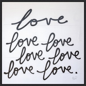 This minimalist artwork features the word love written in bold black letters against a white background, repeated in a grid pattern. The simple and striking design makes it a perfect statement piece. This canvas art print was created by Kent Youngstrom and printed in Madison, WI. It is stretched across a solid surface to resist sagging. We use only premium, high-tension canvas. Our exclusive stretching techniques hide corner folds and provide a taut canvas surface. The artwork is authentically licensed. The canvas appears as if it is floating in the frame because it has a narrow gap between the edge of the canvas and the frame. Our canvas items are individually made using traditional custom framing techniques, it has the quality you would expect from your local frame shop.
