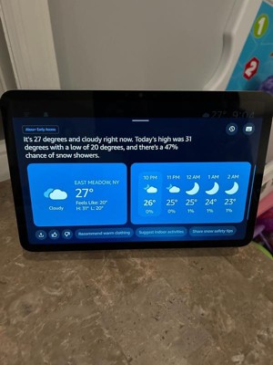 [This review was collected as part of a promotion.] The Amazon Echo Show 11 is a central hub for all the things... It allows me check the weather to see if we need coats for the day, displays our schedule instead of having to write it on a calendar, let's me play music and look up recipes while I cook, even let's me turn on the lights and lower the thermostat in our home! It's one central device that does it all! I'm still learning all the great things it offers, but so far I'm impressed!