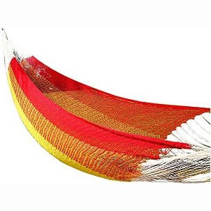 Experience ultimate relaxation with our Mayan Double Hammock, inspired by the traditional South American design. This vibrant hammock is handwoven with thin cotton ropes, offering a soft yet sturdy surface that adapts to your body for maximum comfort. The durable nylon harness ensures long-lasting use, even in outdoor settings. Measuring 118 inches long by 86 inches wide, it comfortably accommodates two adults, making it ideal for couples or solo lounging. Easy to set up, the hammock requires a minimum hanging height of 5 feet and a 13-foot space between handles. Whether you're unwinding indoors, lounging in the garden, or enjoying a camping trip, this hammock is your go-to companion. Compact and lightweight, the hammock comes with a carrying pouch for effortless portability. Its vibrant, multi-colored design adds a cheerful touch to any environment, while the expert weaving pattern reflects authentic craftsmanship. Upgrade your relaxation game with this beautiful and practical Mayan Double Hammock today.