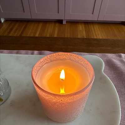 Indulge your senses with the serene glow of the amber sunrise jar candle. This charming piece from Threshold fills your space with a warm amber scent, creating a cozy ambiance. Encased in a glass jar, its cream hue complements any decor. With a single wick and an approximate burn time of 35 hours, it's perfect for cozy evenings indoors. Experience the gentle allure of this calming flame candle.