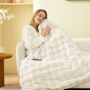 Amelie Home Bubble Faux Fur Heated Throw Blanket, 8 Smart Temperature Control, ETL Certification
