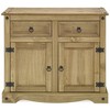 Accent your home with our Cottage Series compact buffet sideboard. While taking up a small footprint this item brings lots of storage space. Two drawers made with real dovetail drawer joints and wood drawer runners as well as two spacious storage areas behind the doors. Solid pine throughout and finished in an antique honey brown.