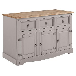 Make a statement in your home with our Cottage Series solid pine buffet sideboard. Three spacious drawers and three large storage areas behind the doors allows you lots of storage. The drawers are made with real dovetail drawer joints and come with solid wood runners. The top has vein lines and is in a complementing soft honey pine finish.