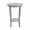 The American Heritage Round End Table with Shelf by Breighton Home combines elegance and sophistication. This simple transitional design features a bottom shelf allowing for additional storage and display area. The slightly curved legs and tapered sillhouette is made of solid wood and MDF is built to last and will complement any new or existing decor. Available in multiple finishes.