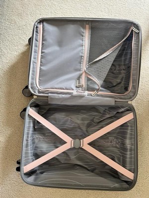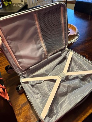 [This review was collected as part of a promotion.] I'm in love with this carry-on. I like that it's a hard case, so nothing I pack gets smashed and broken. The wheels and adjustable handle are great and work perfectly and make it so easy to carry it with me. The zipper inside is great, keeps everything in place, and I really like the zipper on the outside that makes it so I can stuff the case, and it will still close. The design is pretty, too.