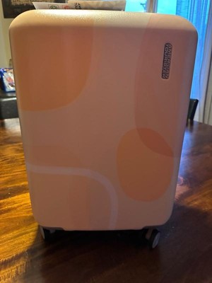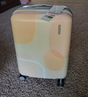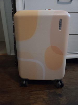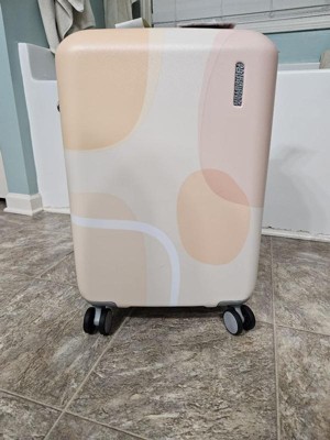 [This review was collected as part of a promotion.] I received this product free from @Influenster and American Tourister for review purposes. I love my new 20" hardside, spinner luggage from American Tourister. It has a modern, peach/pink shapes design on the outer shell while the inside has lots of room to pack 1-3 days worth of clothes. It comes with 360° dual- spinner wheels, an adjustable push button locking handle, and a 10-year warranty. Its 20"×15"×9.5" dimensions make it the perfect size for a airline carry-on, although it can expand an additional 1.5 inches when needed. I look forward to using this easy-to-roll, quality-made spinner when I take it on vacation this summer and getting lots of wear out of it in future years to come. 🧳🛩🛳 😊