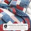 Crafted from high-quality double-brushed microfiber, this quilt set provides an ultra-soft touch for a comfortable nights sleep. The lightweight yet durable fabric ensures year-round usability, offering cozy warmth through every season. The standout feature of this set is its intricately designed patchwork pattern, showcasing a blend of patriotic colors and nostalgic motifs. This classic design brings a touch of Americana charm to any bedroom, making it a charming addition to your home decor. Whether layered with other bedding or displayed on its own, this quilt set combines style and comfort, perfect for those who appreciate a timeless, cozy look.
