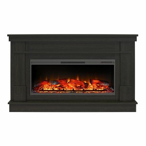 Elmcroft Wide Mantel with Linear Electric Fireplace, Charred Oak