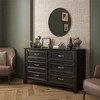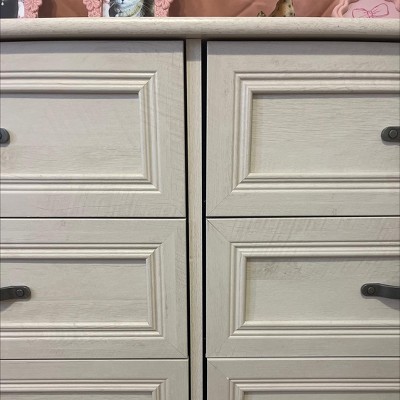 The dresser is nice and easy to put together. The only thing I dislike is the quality of the drawers the front piece where the handles go through is very thin and I can see it being an issue with cracking and braking. The feet holding up the dresser are actually plastic I didn’t realize or notice that in the description. The shipping box came in without any damages but the front corner was cracked and already chipping so I know it wasn’t a problem with the shipping it was packed that way so disappointing to pay for a new dresser I expect it to be in good condition. And there is also a pretty big gap on one side of the drawers the holes are pre made so there nothing I can do to even it out.