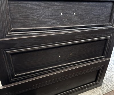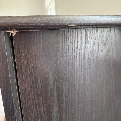 I did not expect this quality. To my surprise while putting the furniture together, many pieces were made with wrapped cardboard (e.g where the drawer pulls screw in!), the back is literally cardboard and it was missing all drawer pulls. The particle wood wrapped with plastic wood like by nil material that was missing in corners and on other pieces it was uneven. The pieces that hold together the drawers were plastic and a couple broke when screwing them to the wood. I followed the instructions and recommendations, didn’t use a drill and carefully put every piece together specially once I realized the quality of the item. Even the foot pieces are plastic! It would’ve been the perfect dresser of the quality wasn’t the worse I’ve ever seen.