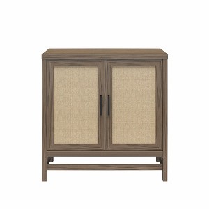 Ameriwood Home Lennon 2 Door Storage Cabinet, Medium Brown and Faux Rattan