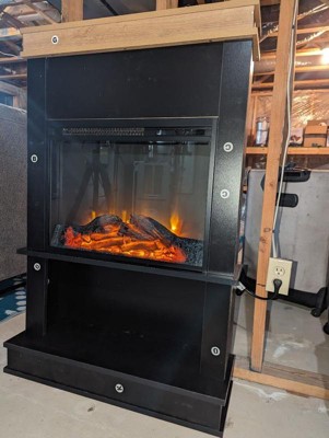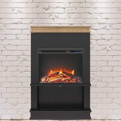 Enjoy the warm and inviting feel of a fire at the push of a button with Ameriwood Home Mateo Fireplace with Mantel and Open Shelf. Adorn with your favorite décor or your beloved family photos atop the beautiful naturally finished mantel, and store books and décor on the lower shelf below. Control the Fireplace flame setting with the included remote control or by the touch panel and choose to enjoy your Fireplace with or without the heat setting while still allowing the flames to give off their calming feel. This 23" fireplace insert is powerful enough to warm a room up to 400 square feet and features an adjustable temperature control and adjustable flame to both create your desired ambiance while keeping your room at the perfect temperature. The Electric Fireplace ships flat to your door and requires assembly. Two adults are recommended to assemble and move. Once assembled, the Fireplace measures to be 29.69" W x 9.72" D x 45.24" H.