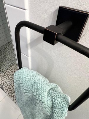 [This review was collected as part of a promotion.] This towel ring in oil rubbed bronze is a stylish and functional addition to any bathroom. It has a robust construction and elegant finish, which gives it a premium look and feel. It blends in well with the oil rubbed bronze fixtures in my bathroom. It is easy to install and securely holds towels, making it a practical choice for everyday use. It offers excellent value for the price.