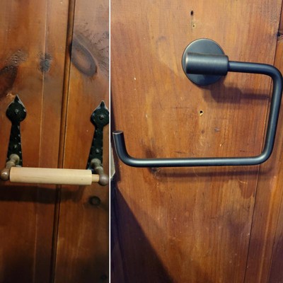 [This review was collected as part of a promotion.] Love the shape of this towel ring - different and more modern than the traditional circle. The matte black is beautiful, and installation was a breeze. Great compliment to my other bathroom finishes.