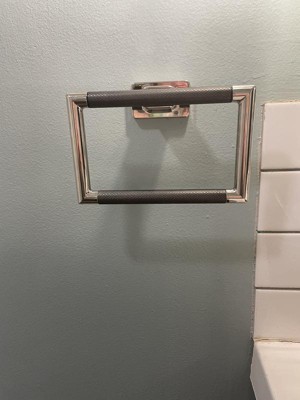 [This review was collected as part of a promotion.] This polished nickel/gunmetal contemporary towel ring will make a perfect addition to our bathroom. I love the design and how easy it was to install.
