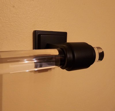 [This review was collected as part of a promotion.] I'm so happy with this Glacio Clear/Matte Black Contemporary 18 in Towel Bar. This is such a sleek design that could easily go with any style decor. It would fit with anything from modern to country rustic. The bar is crystal clear and is securely attached to the matte black pieces that affix to the wall. The black pieces are flawless with no scratches or discoloration. My husband quickly and easily installed it with the included hardware. This is a beautiful assuring to my bathroom.
