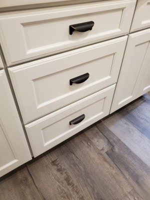 We love these pulls. We got them along with the finger pulls. Everyone loves them in our new kitchen.