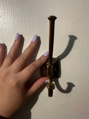 [This review was collected as part of a promotion.] This hook is both stylish and functional - love the champagne bronze color. Sturdy double-prong design holds even heavier items securely without bending or loosening. Very simple to install.