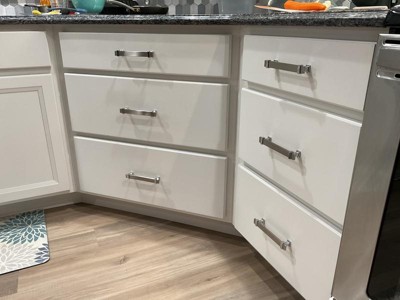 [This review was collected as part of a promotion.] The Amerock center to center pull in brushed matte black & satin nickel was exactly what our 20 year old kitchen needed. It allowed me to Accentuate & Create an Enhanced looked by changing a small detail. The easy installation & color coordination was exactly the Update my kitchen needed. Highly recommend!