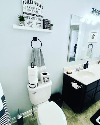 [This review was collected as part of a promotion.] I recently tried the Amerock Stature Matte Black towel ring and love it! The Towel Ring was very easy to install in my guest bathroom. All the pieces aligned perfectly and the instructions were clear and easy to understand. The towel ring is a lovely matte black that is great quality. I love that it is modern and goes with any decor. It is heavy and sturdy and has held up very well on the wall. I would definitely recommend this ring and would purchase this brand in the future.