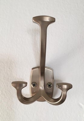 [This review was collected as part of a promotion.] I am very pleased with this double prong wall hook. It was super easy to install. It is also very sturdy and looks great hanging on the back of my bathroom door! I am very pleased with it!
