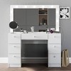 - 7 Drawers: With the Amalthea White Vanity Table you can organize all your beauty essentials effortlessly with the ample storage space provided by the 7 drawers of this glass top vanity.