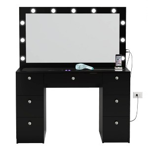 Ananke Lighted Crystal Knobs Makeup Vanity Black - Boahaus: Elegant Dressing Table, Wood Laminate, 11 LED Bulbs
